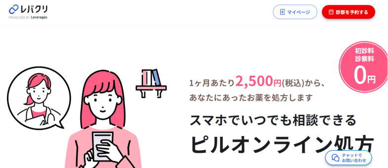 「レバクリ」は、予約から診察、お薬の処方までをスマートフォン一つで完結できるオンライン診療プラットフォームです。IT大手のレバレジーズ株式会社が運営し、提携医療機関の医師が診察を行います。